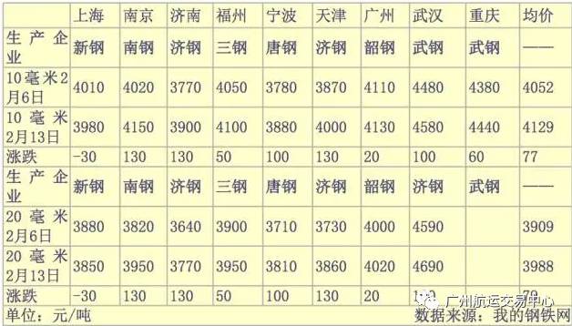 2月6~13日,全国部分主要船板交易市场价格继续上涨。具体来看,2月13日,10毫米船板均价为4129元/吨,上涨了77元/吨;20毫米船板均价为3988元/吨,上涨了79元/吨。
